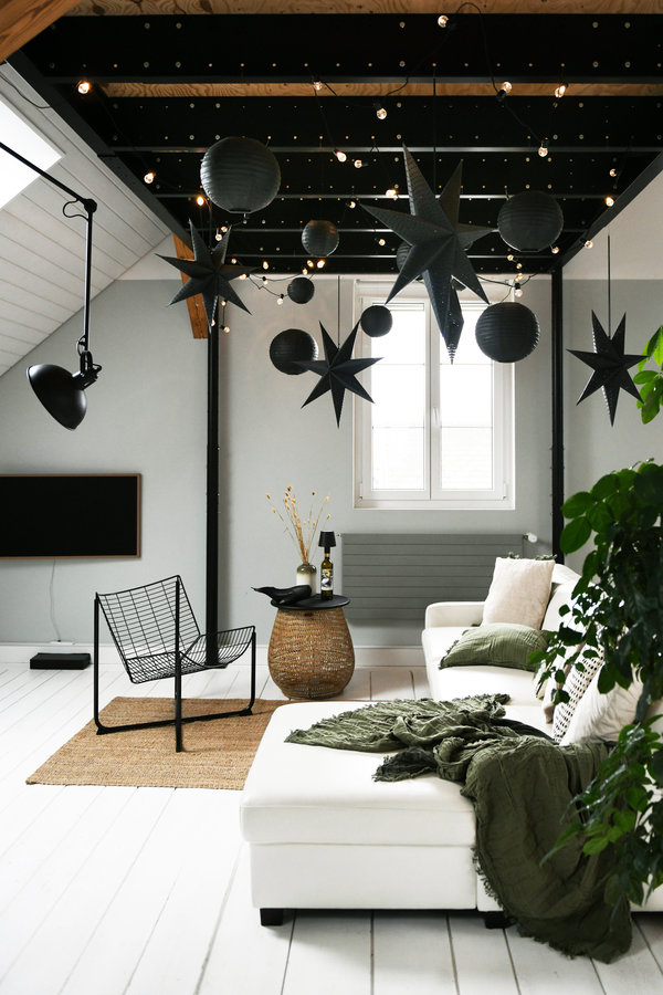 Ikea, Sessel, Loft, Frame, Ledersofa, Dielenboden, Sterne, Weihnachten, Weihnachtsdeko