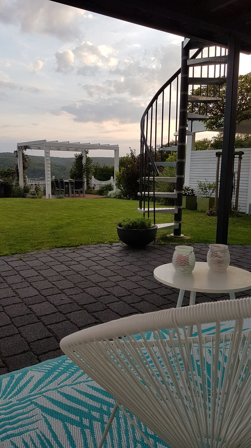 Der Blick von der unteren Terrasse auf unseren Pergolaessplatz.Habt ein schönes Wochenende 😊