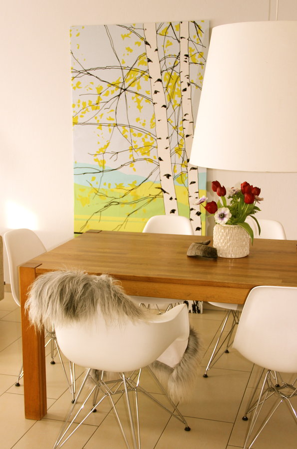 Stoffbild, Tulpen, Holztisch, Frühlingsdeko