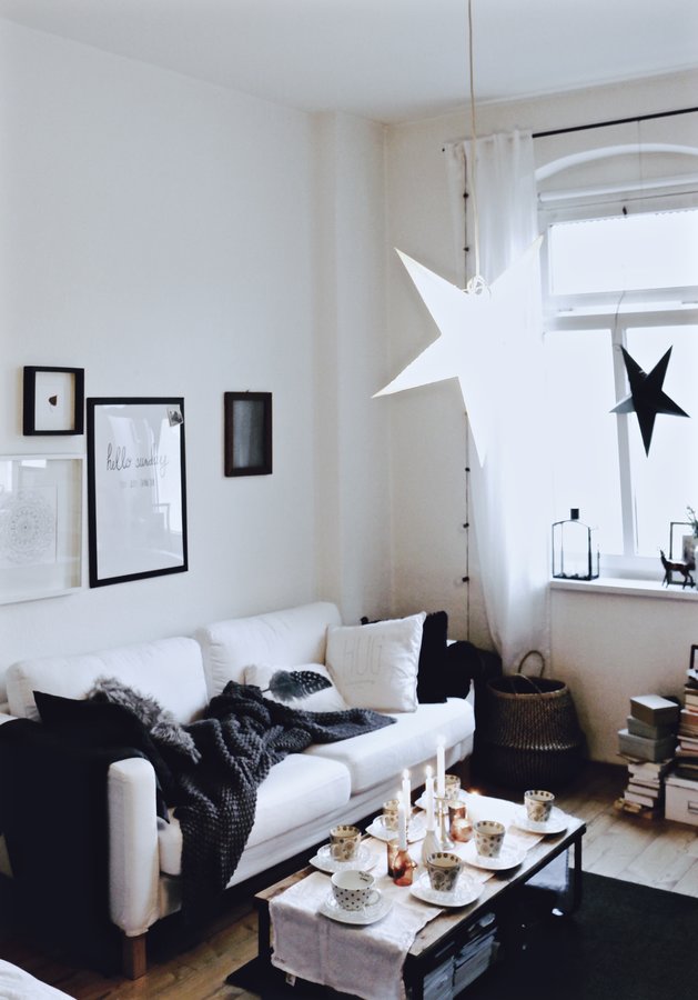 Weihnachten 2016, Advent, Winter, Winter 2016, Sofa, Wohnzimmer, Laminat, Tisch, Altbau, Boho, Ethno, Weiß, Ektorp, Stern, Sterne, Weihnachtsdeko, Weihnachten, Couch