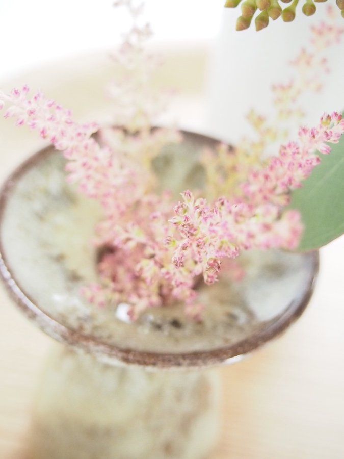 ... bringt die zarten Rosé Töne der Astilbe in dieses getöpferte Väschen. 💛