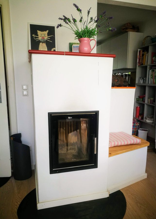 Der Ofen hat eine super Steuerung, dass er ewig lange die Glut hält. Im Winter heize ich morgens an und er hält bis abends alles schön mollig warm.