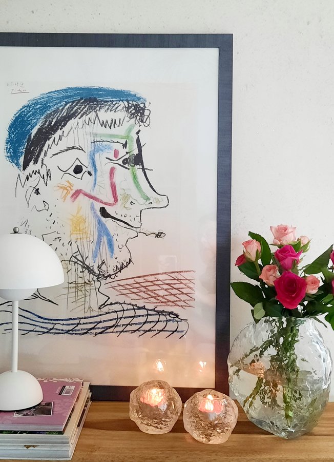 Der "Rauchende Picasso" ist auch ein Lieblingsstück von mir! Ich habe ihn in den Kleinanzeigen entdeckt und mich spontan verliebt! Bunt, aber zurückhaltend, macht er überall eine gute Figur und das Motiv finde ich nach wie vor witzig. Das beste aber ist, er war ein echter Schnapper!