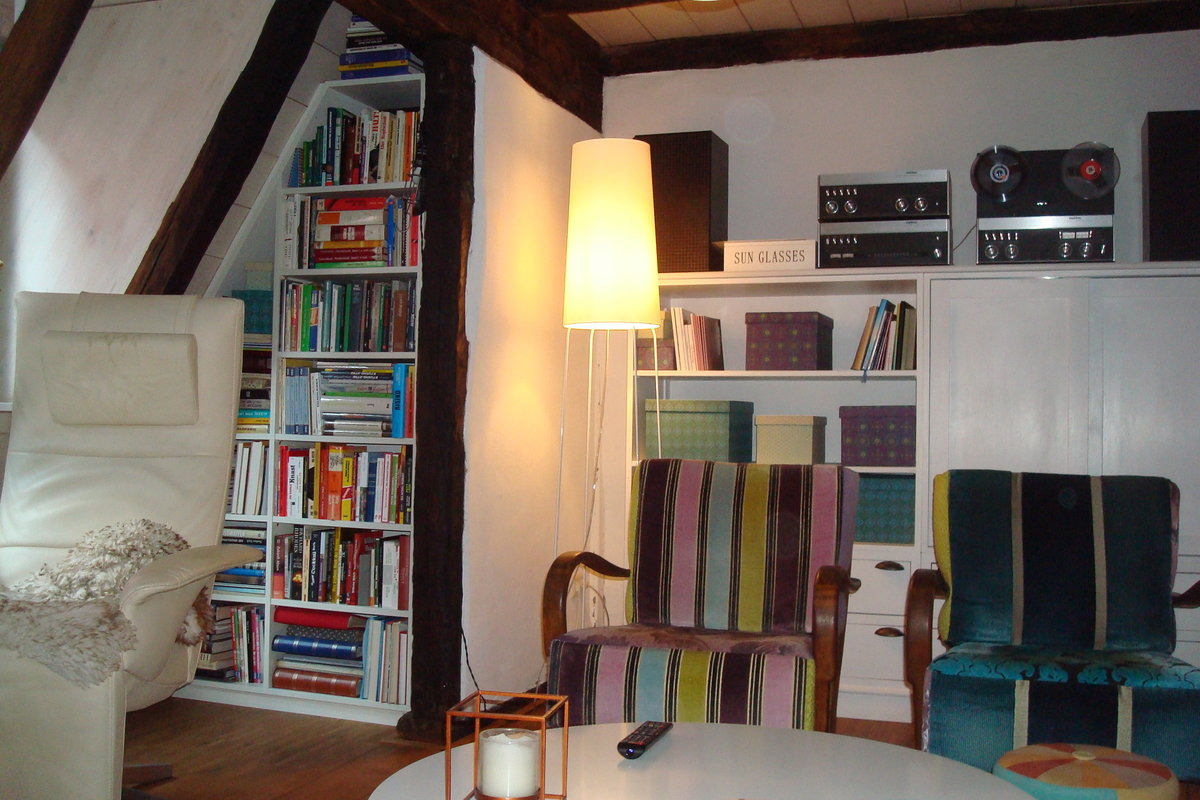 Die beiden Sessel waren Dachbodenfunde im Elternhaus meines Mannes. Sie wurden neu bezogen mit Stoffen von Designers Guild. Jetzt sind diese Einzelstücke unsere Lieblinge. Sie erinnern uns an die Großeltern meines Mannes, aber sie sind auch für uns passend verändert.