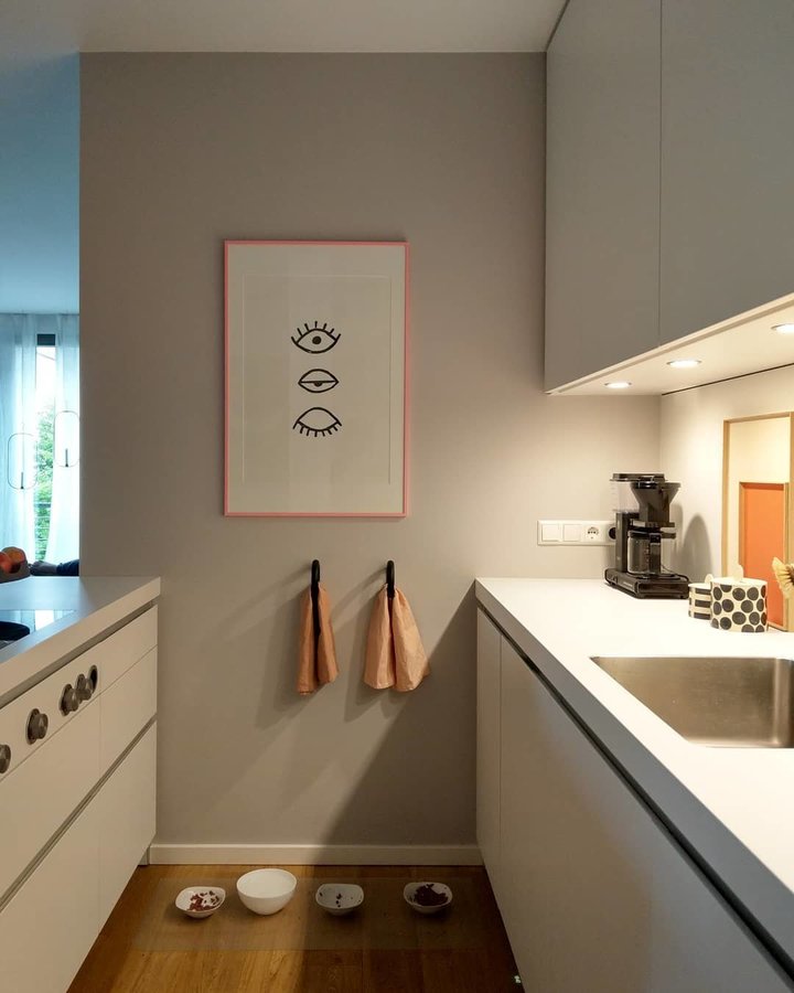 Küche, Offene Küche, Weiße Küche, Wandfarbe Grau