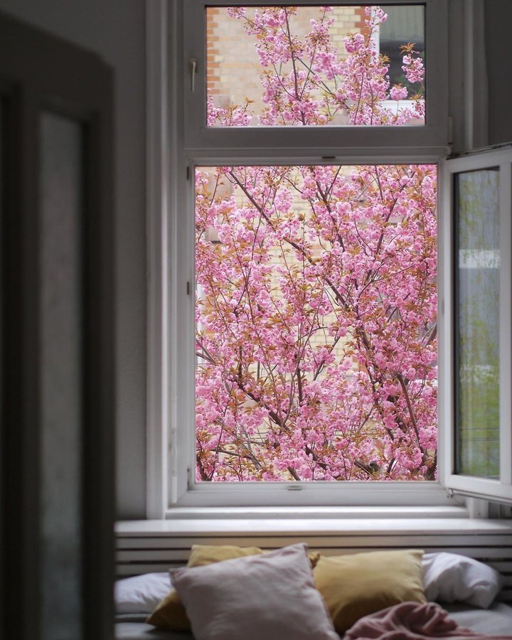 Fenster, Kirschblüte, Kirschbaum, Frühling
