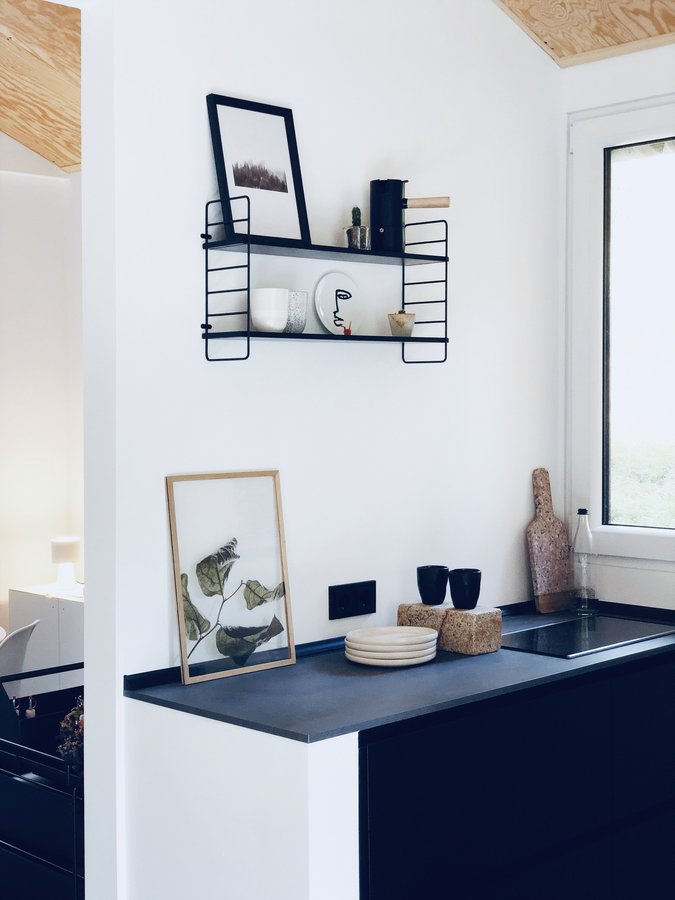 Küche, Black and white, WALD, waldhäuschen, tinyhouse