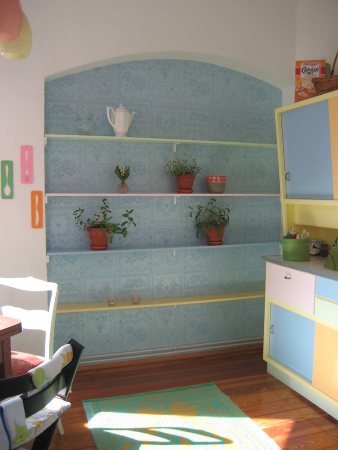 Regal, Pastellfarben, PIP Tapete, DIY Wanddeko
