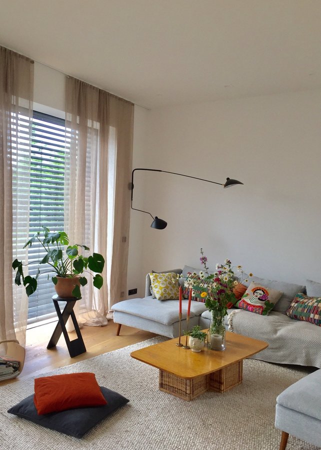 Die Vorhänge sind fertig und es ist genau so geworden, wie ich mir vorgestellt hatte...ganz leichte, lichtdurchlässige aber etwas blickundurchlässige Stoffe aus 100 Prozent Leinen...💕