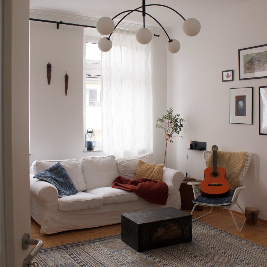 Wohnzimmer, Sofa, Teppich, Lampe