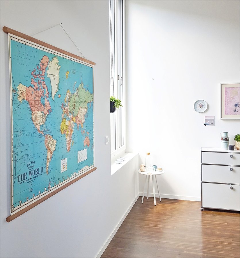 Weltkarte, Schullandkarte, Flur, Beistelltisch, Wanddeko, Hängepflanze