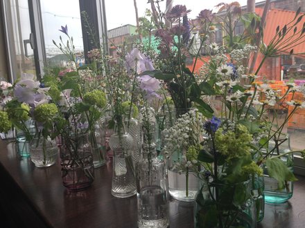 Die Wicken sind in der Vase und - inspiriert vom blauen Haus - mit hellblau kombiniert dekoriert.