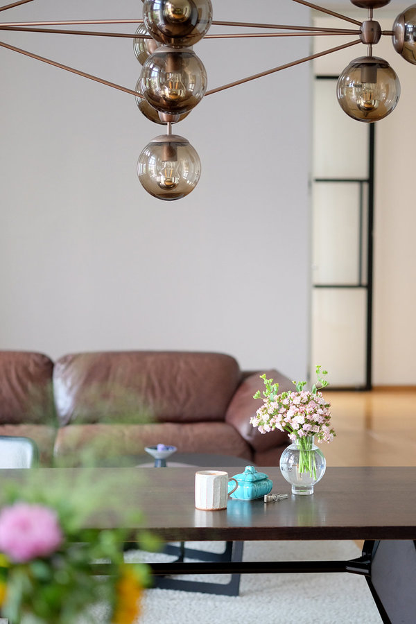 Neue Wandfarbe, Peignoir, Essbereich, Ledersofa, Kronleuchter