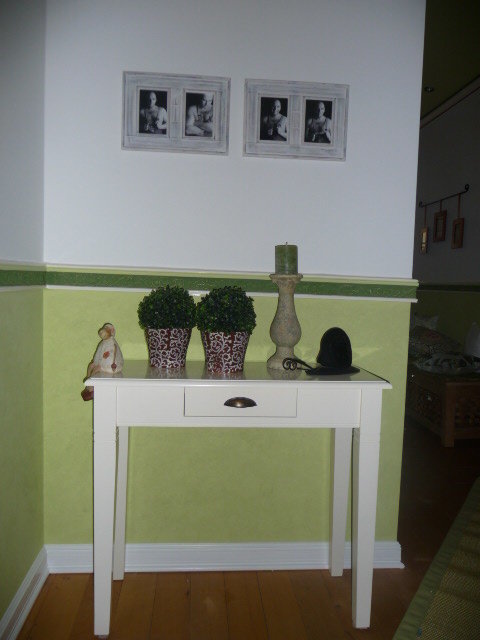 meine Diele geht einmal um Eck, hier steht jetzt anstatt das Eisentischchen ein kleiner Holztisch..