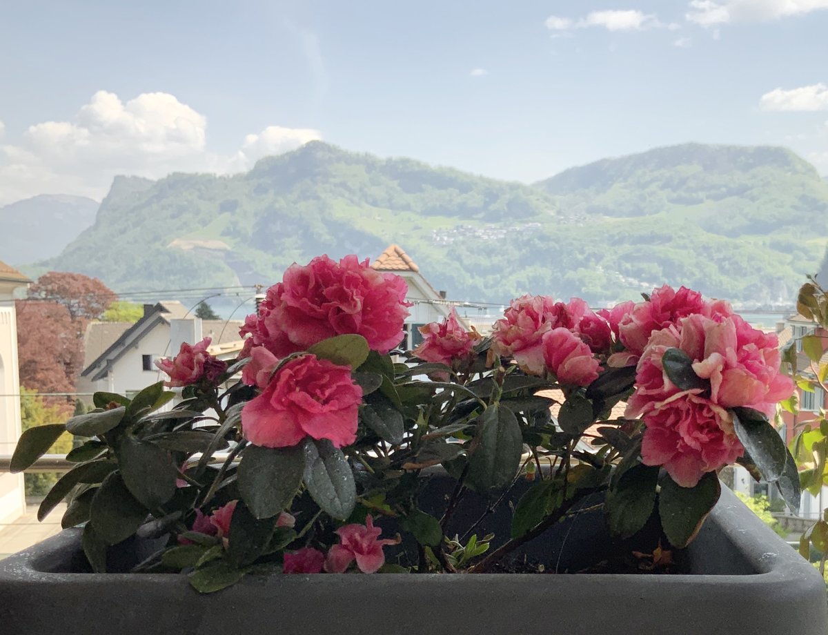 Dies sind Zimmerazaleen, die ich den ganzen Winter am Balkon hatte und die seit Oktober blühen. Es wird die letzte Blüte sein, bevor die Pflanze im Sommer blütenlos ruhen wird.