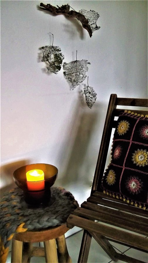 Herbstdeko, Stuhl, Kissen, Wolle, Diy, Blätter, Häkeln, Hocker, Holz