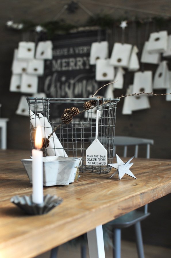 Weihnachtsdeko, Drahtkorb, Hygge, Adventskalender
