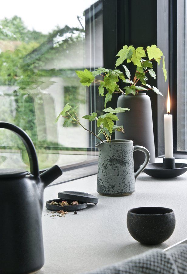 Regen, Kerzenlicht, Kleine Freuden, Rosentee, Teekanne schwarz, becher schwarz, Krug