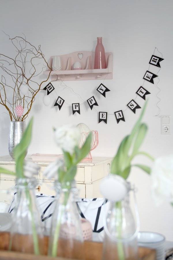 Easter, Deko, Girlande, Schriftzug, happy easter, Rosa, Schwarzweiß, Letters, Buchstaben, Osterdeko