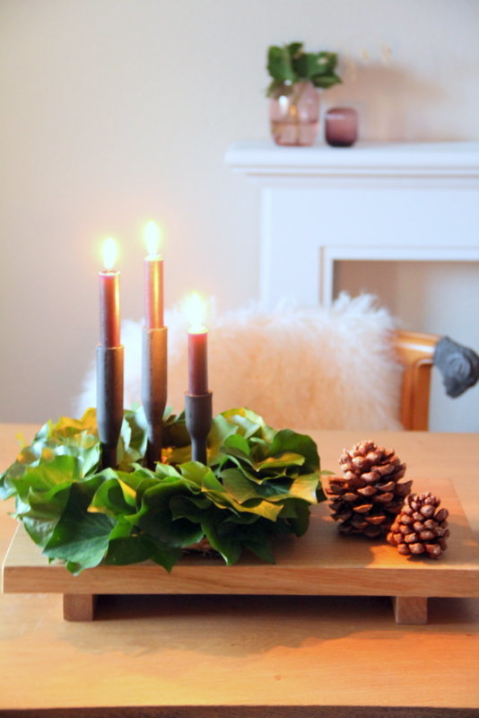für den ich in der Umgebung schöne große Blätter gepflückt habe, schmückt den Tisch bis die Deko für den Advent einzieht.