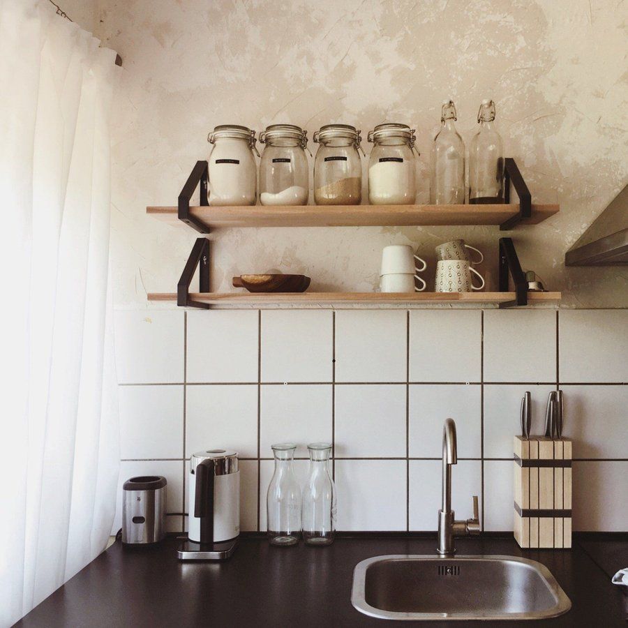 Ein Blick in die Küche. Unser neues Regal hängt und wir lieben es.