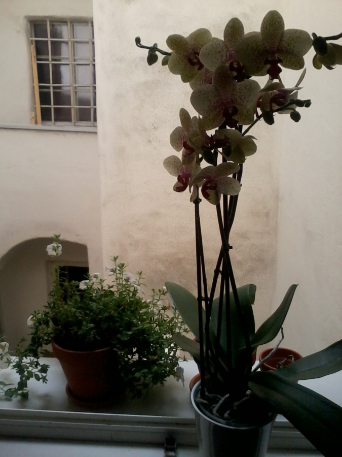 aus einem der beiden Schlafzimmerfenster. Das Fenster gegenüber gehört schon wieder zur Nachbarwohnung. Ein Wohngefühl wie in einem italienischen Palazzo,......