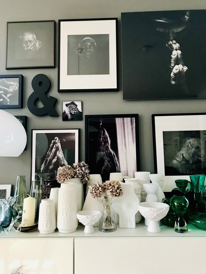 Ein kleiner Ausschnitt meiner Bilderwand und der Vintage-Vasensammlung auf dem Sideboard darunter.