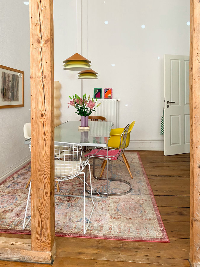 Esszimmer, Altbau, Altbauliebe, Gemütlich, Holz, tesammans, Ikea, Colours, Interior Design, Interior, Solebich, Innenarchitektur, Vitra, Eames, Chrom, Teppich