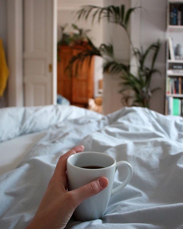 Schlafzimmer, Bettwäsche, Kaffee, Kaffeetasse