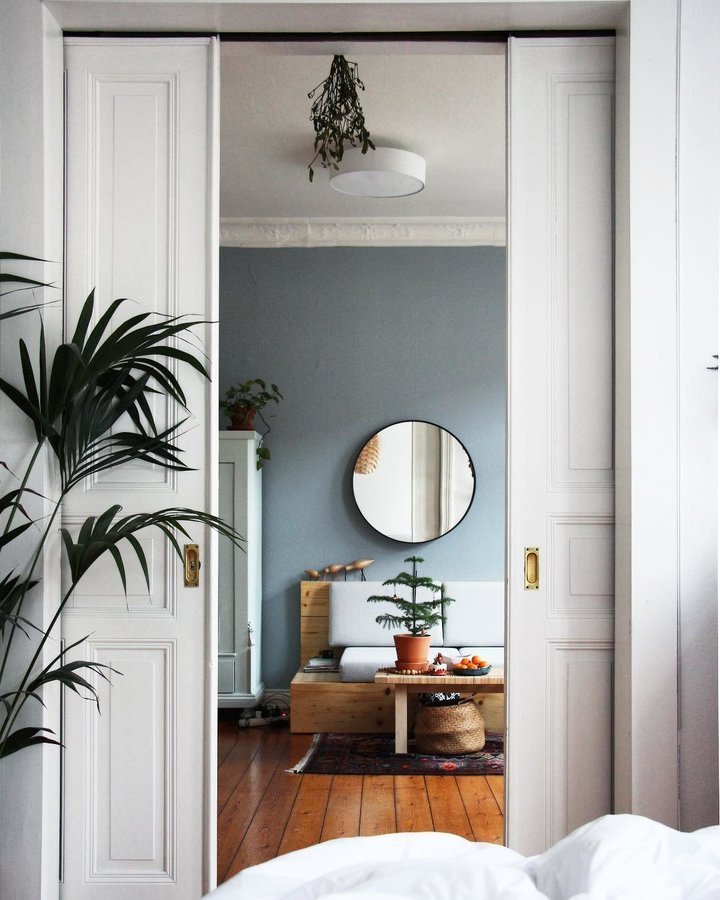 Tür, Wandfarbe, Einblick, Wohnzimmer, Spiegel, Pflanze, DIY Sofa