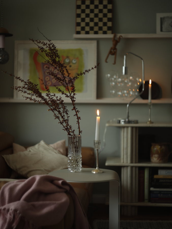 Eine Seidenmalerei, extra für mich, von meiner besten Freundin aus der Kindheit, ist diese Katze im Hintergrund.