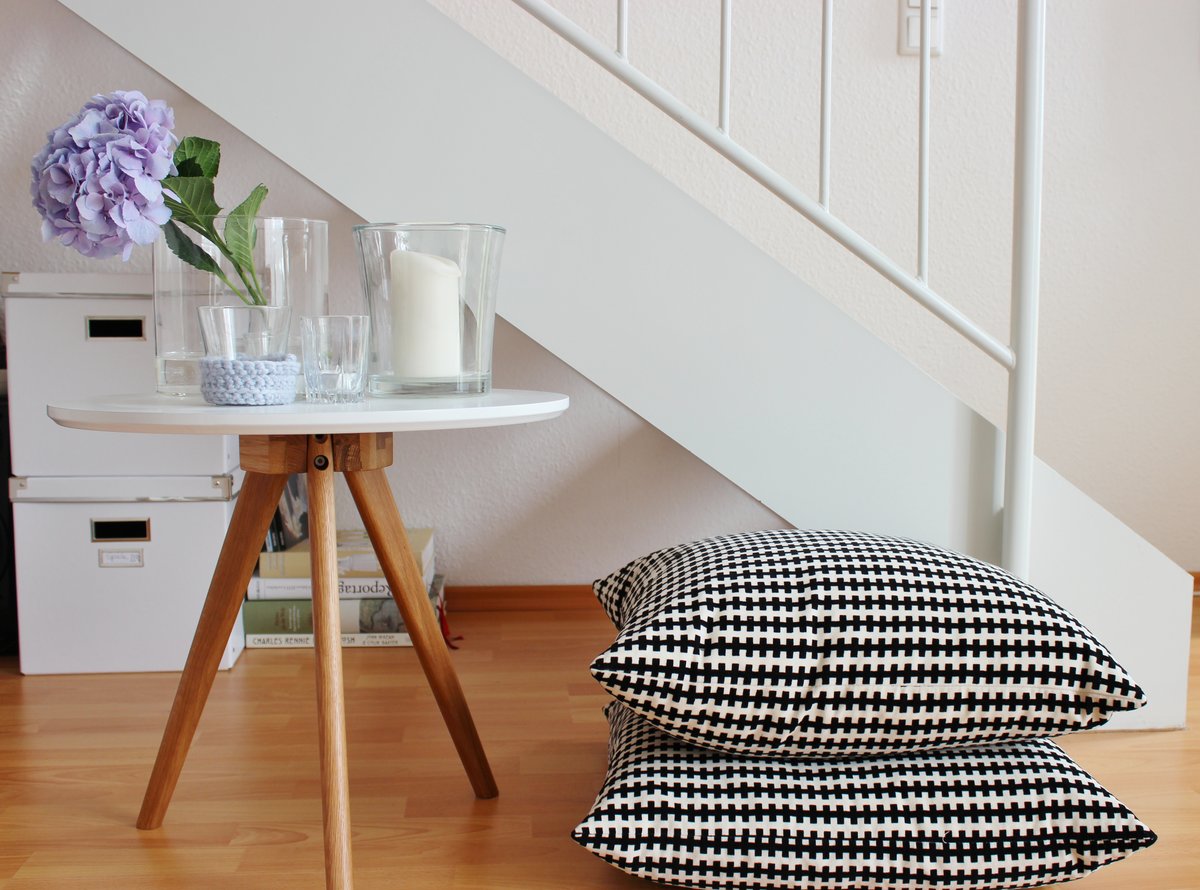 Ich habe die Dreier-Tischgruppe aufgelöst. Die anderen beiden Tischchen werde ich jetzt auch mal in der Wohnung verteilen. Mal sehen, wo sie landen