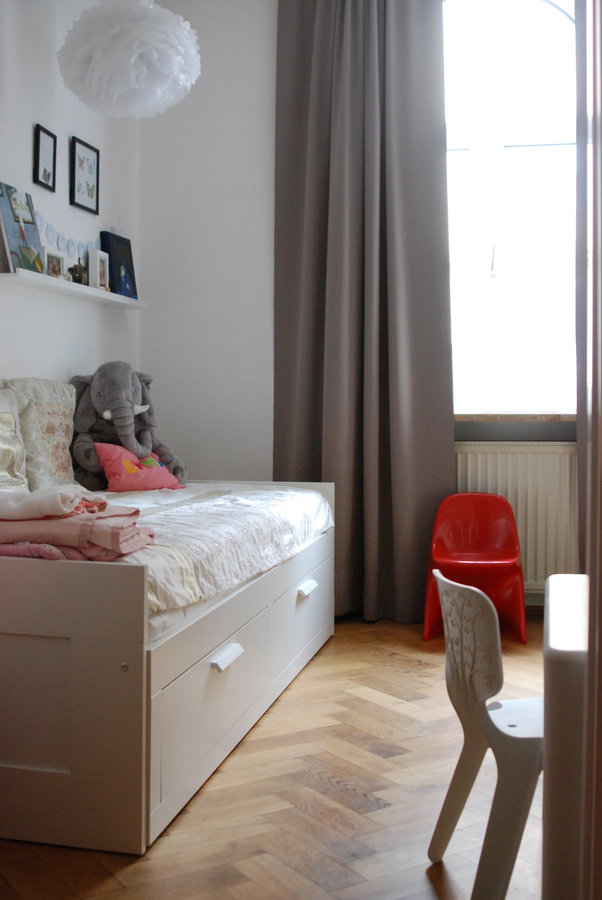 Damit mir bei 6 Wochen Sommerferien nicht langweilig wird, habe ich nach einer kleinen Familienbesuchstour durch Deutschland noch ein altes Sofa abgebaut, Ikea einen Besuch abgestattet und ein neues Bett fürs Kind aufgebaut. Und das Beste: Endlich mag sie in ihrem eigenen Zimmer schlafen. JUCHE! Dieses Bett ist wirklich so etwas wie eine eierlegende Wollmilchsau: Kinderbett, Besuchsbett, Kramunterbringung...ich finds gut.
