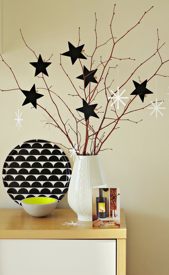 Hervor kamen ganz viele schwarze große Sterne, die mittels kleinen Klämmerchen befestigt sind. Eine so wundervolle Idee...Ich liebe Sterne und kann eigentlich nie genug davon haben.