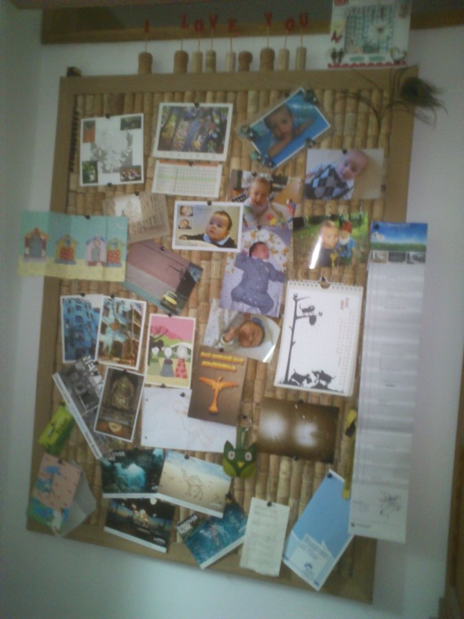 Die Pinnwand haben wir selbst gemacht. Das war gar nicht so einfach, da nicht alle Korken die gleich Größe haben. Aber ich denke, er ist ganz gut geworden.