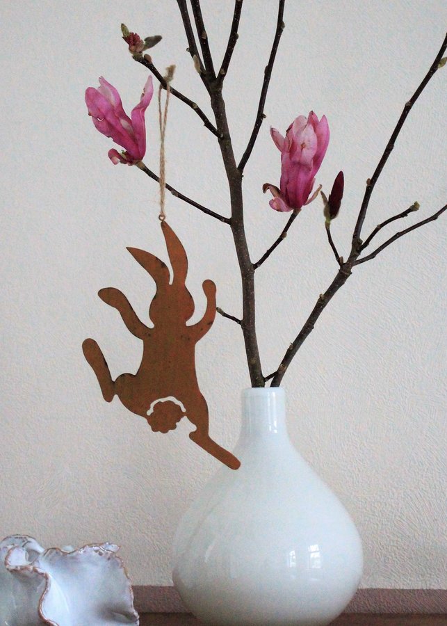 Magnolie, Osterhase, Osterdeko, Blumendeko, Hasenanhänger, Pink, Zweige, Frühling, Osterstrauch