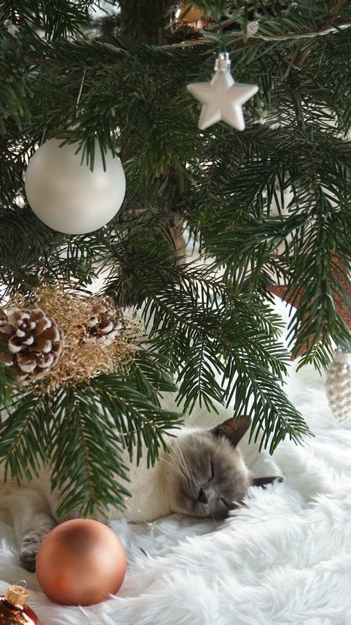 Christbaum, Weihnachten, Kupfer, Gold, Weiß, Katze