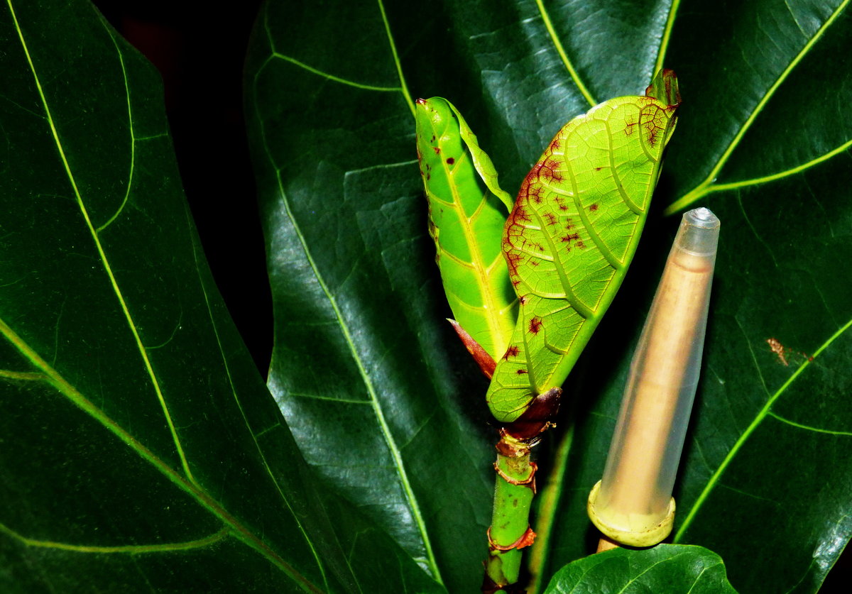 und endlich! 😍 - ich hatte die Hoffnung auf 'Nachwuchs' schon aufgegeben - sprießt meine Geigenfeige nach monatelanger Wachstumsweigerung 😄 nun doch.