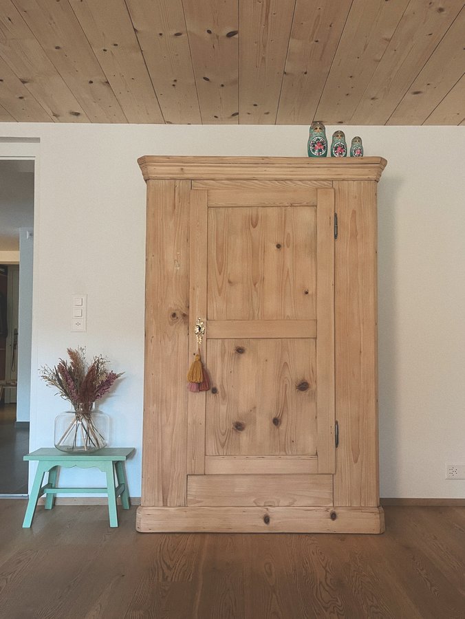Übrigens was ist schon eine Wohnung auf dem Land ohne antiken Tannenschrank? Eben 🤷🏻♀️. Dieses Liebhaberstück erfreut mich jeden Tag, wenn ich mein Büro betrete 🥰.