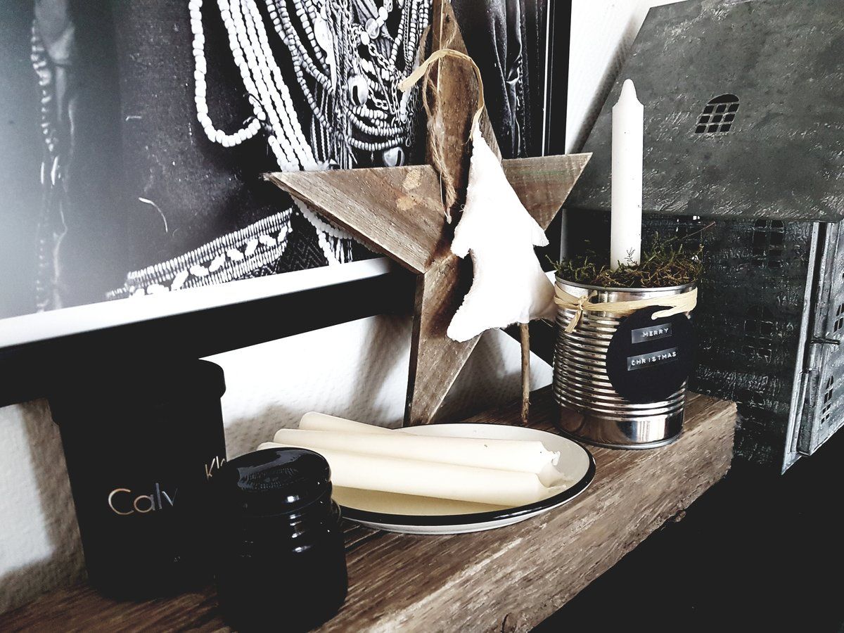 Ein diy stoff tannenbaum und blechdose mit kerze