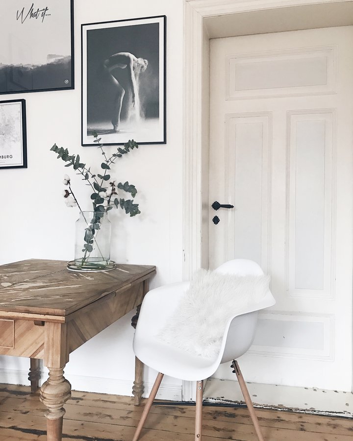 Esstisch, Stuhl, Kissen, Tisch, Altbau, Dielen, Deko, Bilder, Poster, Esszimmer, Vintage