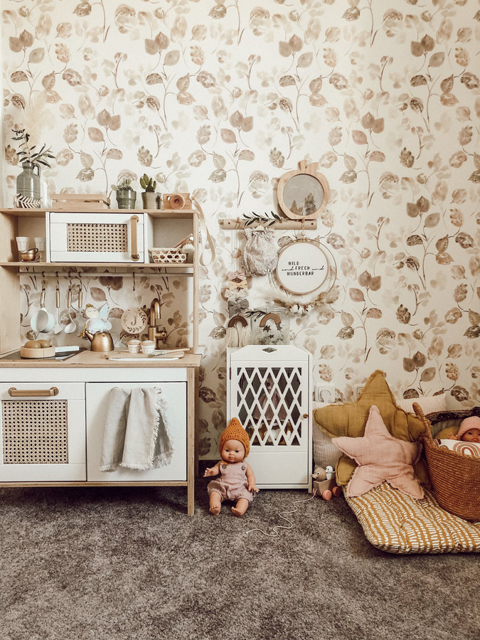 kidsroom, Kinderzimmer, Boho Chic, Boho, kidsstuff, Kinderküche, Wiener Geflecht, Tapete, Kinderzimmertapete