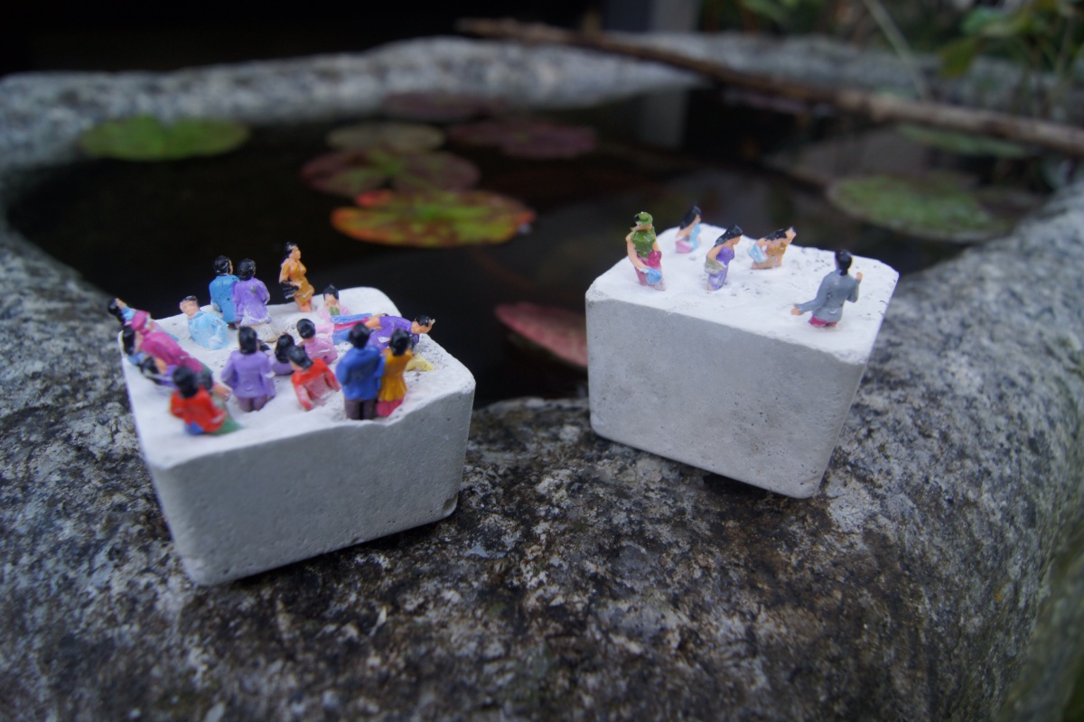 Modellbahnfiguren, beton, Granittrog, Seerosen, Wass
