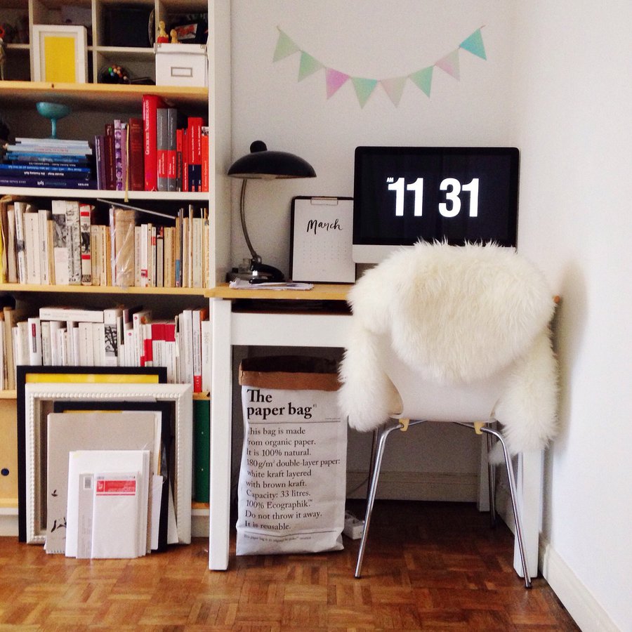 Schreibtisch, Schreibecke, Schaffell, Schreibtischecke, Arbeitplatz
