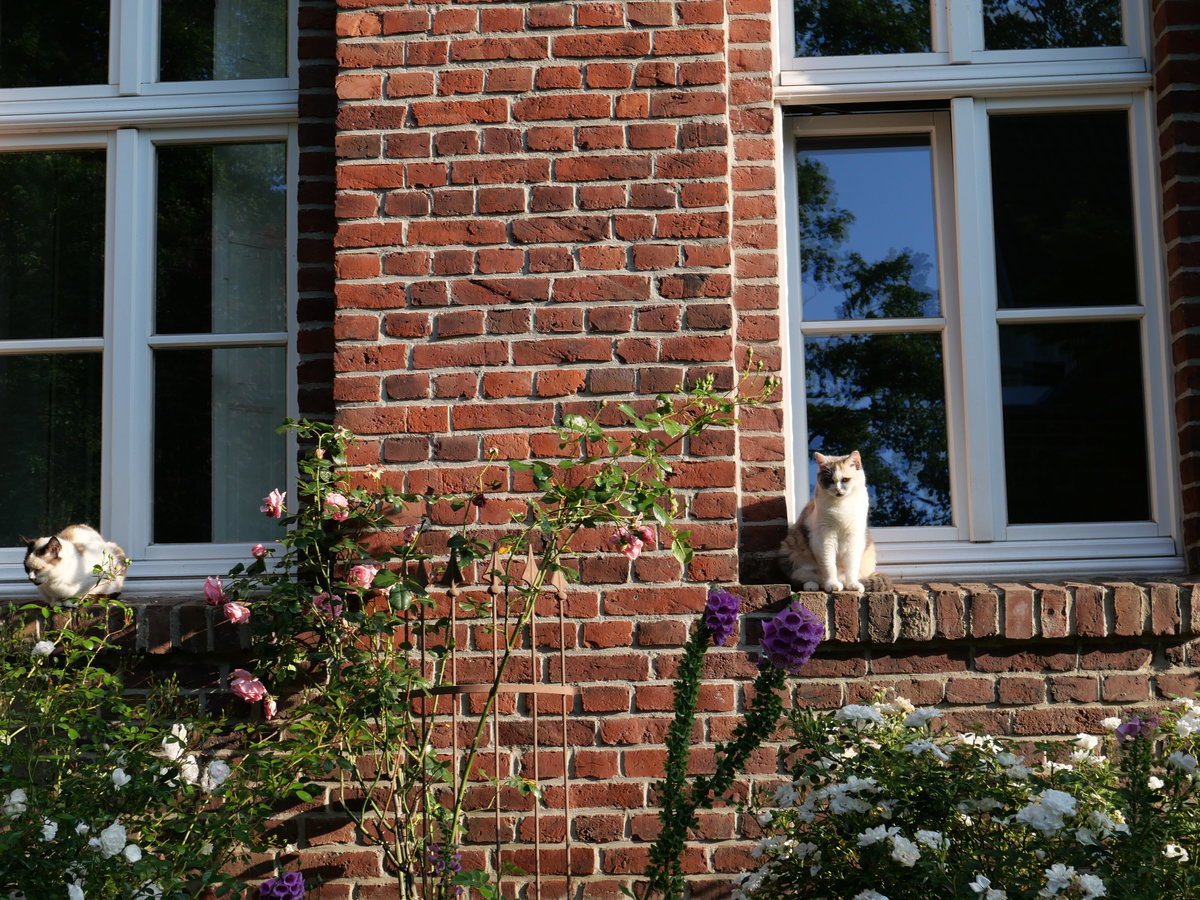 Altes Mauerwerk, Rosen, Katzen