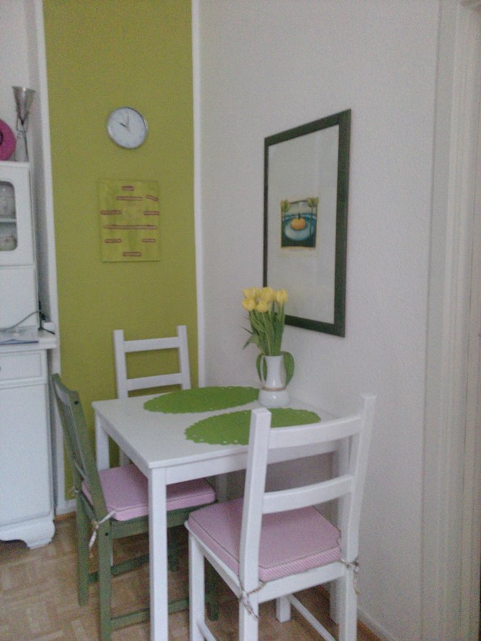 Weiß, Küche, Tisch, Gestrichen, Grüne Wand