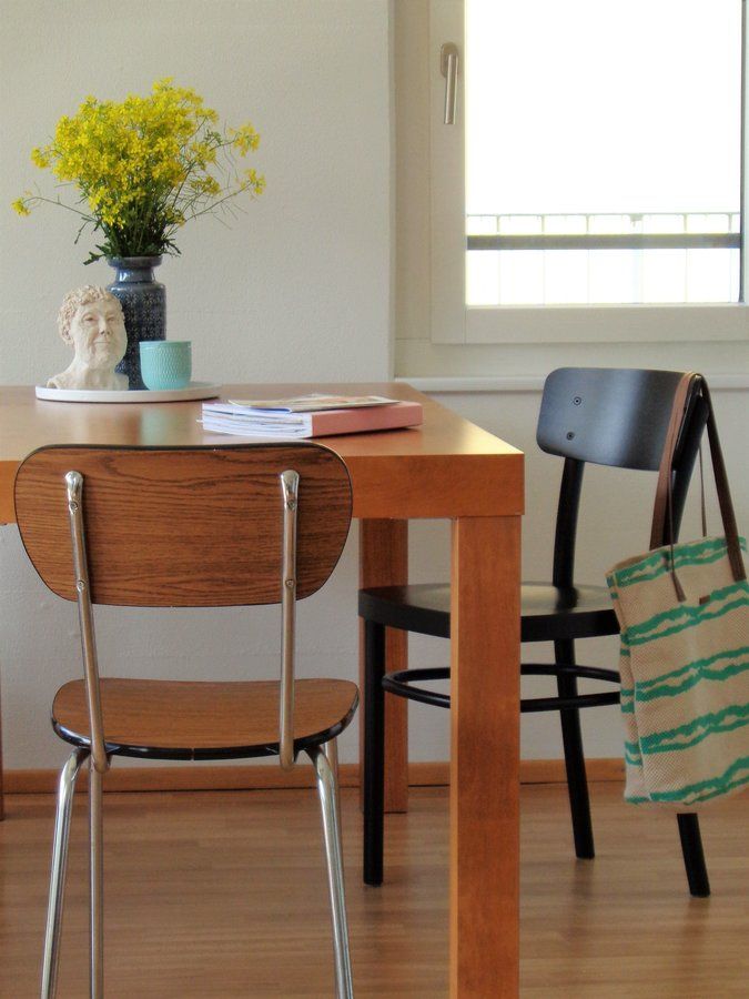 Essplatz, Stuhlmix, BRockenhaus, erster Wiesenstrauss, kleine Büste vom Flohmarkt, Versöhnung