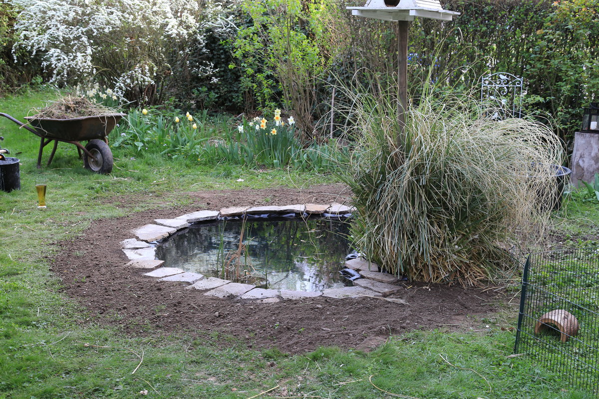 Letztes Jahr mussten wir die Fische über Winter rein holen, jetzt haben wir den Teich größer und tiefer gemacht. Ich finde ihn gut gelungen. Kommt noch ein kleiner Springbrunnen hinzu...