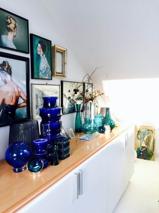 Schlafzimmer, Dachschräge, Sonne, Vintage vasen, Bilderwand