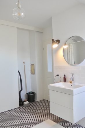 Badezimmer, Dekorfliesen, Geheimversteck, Putzschrank, Waschbecken, Spiegel
